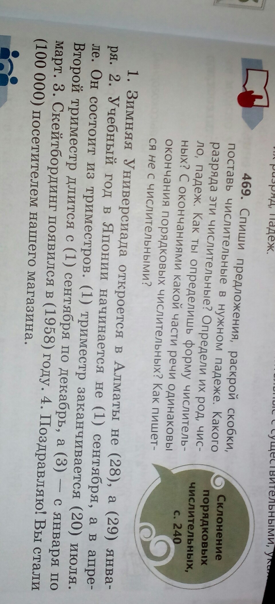 2) Учебный год в Японии начинается не первого сентября, а в апреле. Он состоит из триместре. Первый триместре заканчивается двадцатого июля. Второй триместре длится с первого сентября по декабрь, а третий - с января по март.