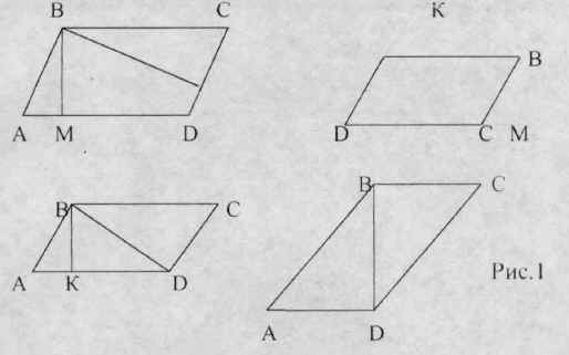 Стороны параллелограмма равны 4 см и 5 см, угол между ними 45градусов. Найдите высоты параллелограмма.