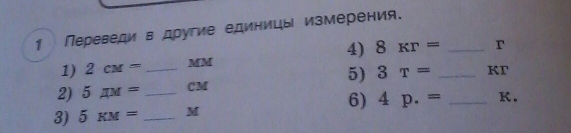 2 см=20 мм 5 дм=50 см 5 км=5000 м 8 кг=8000 г 3 т=3000 кг а дальше не знаю
