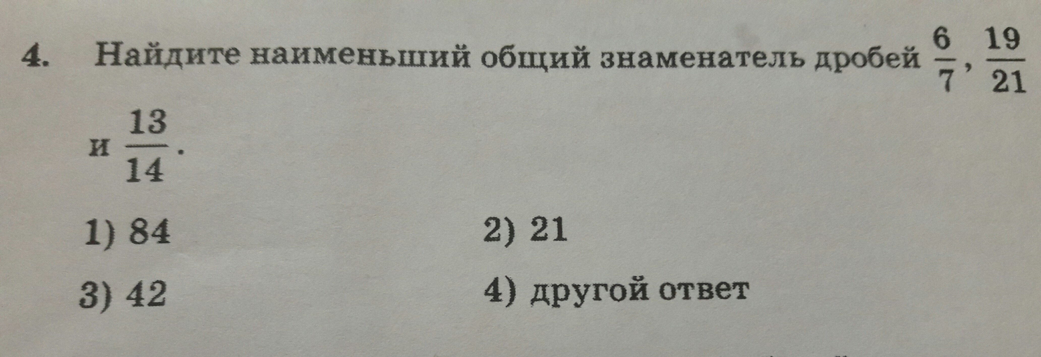 Найдите наименьший общий знаменатель дробей 6/7, 19/21 и 13/14 P.S можно с решением... пожалуйста))