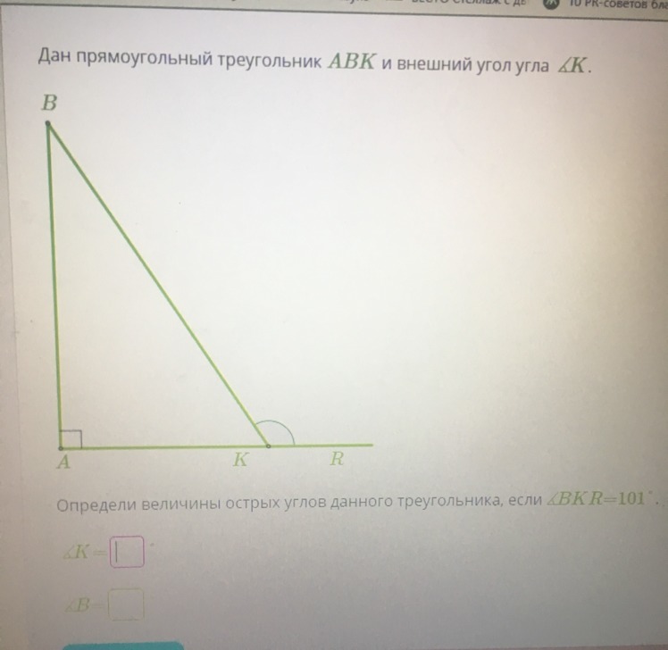тогда тк сумма углов треугольника равна 180, то АВК=180-90-79=1