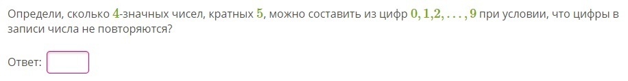 В 1 случае, когда число заканчивается 0, остальные 3 мы можем выбрать из множества 9 цифр. A из 9 по 3 = 9!/(9-3)!= 504