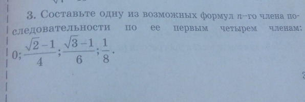 x_{n} = frac{ sqrt{n}-1 }{2n}  \  \  x_{1} =  frac{ sqrt{1}-1 }{2*1} =0 \  \  x_{2} = frac{ sqrt{2}-1 }{4}  \  \  x_{3} = frac{ sqrt{3}-1 }{6}  \  \  x_{4} = frac{ sqrt{4}-1 }{2*4} = frac{1}{8}  \  \