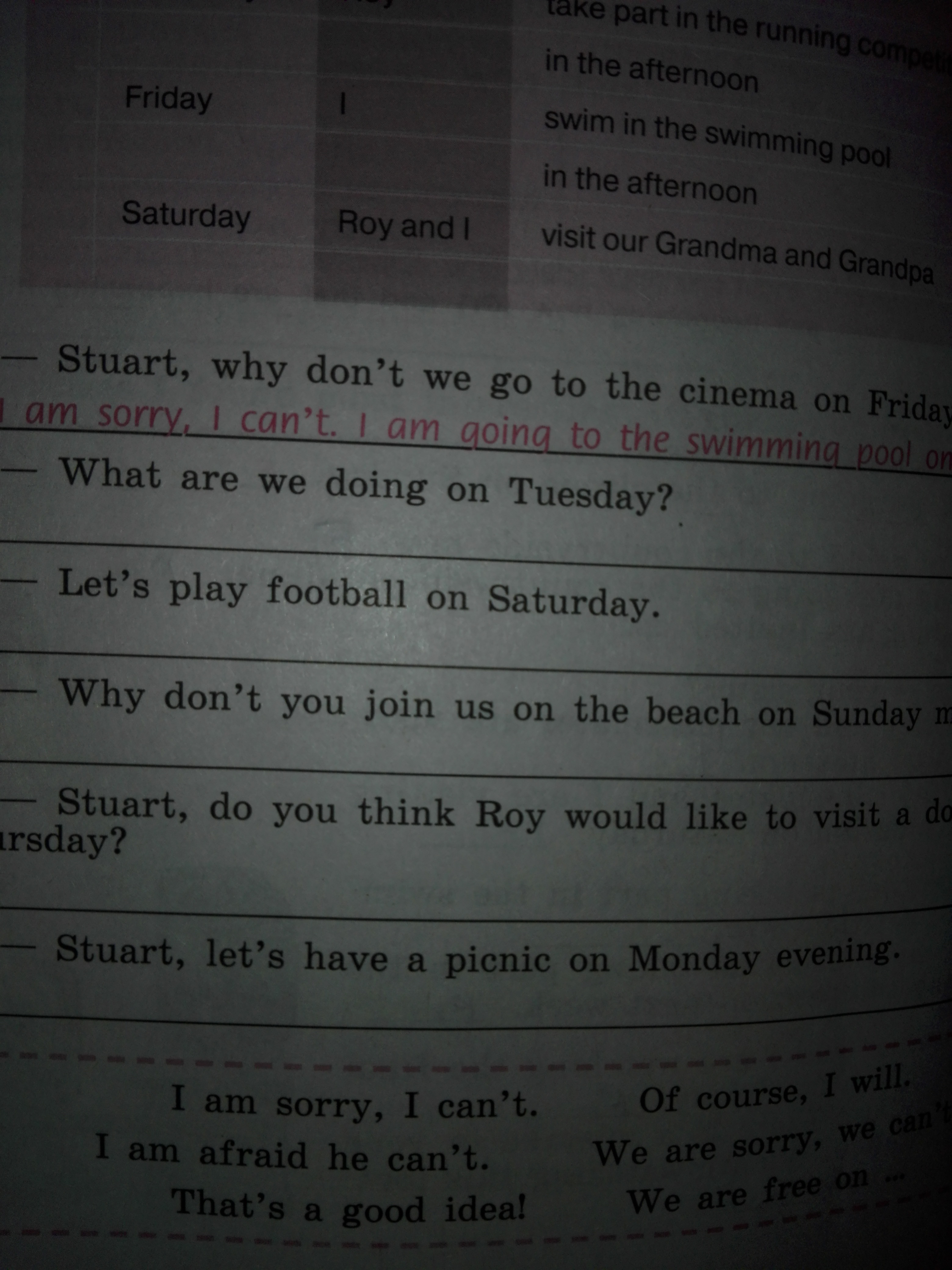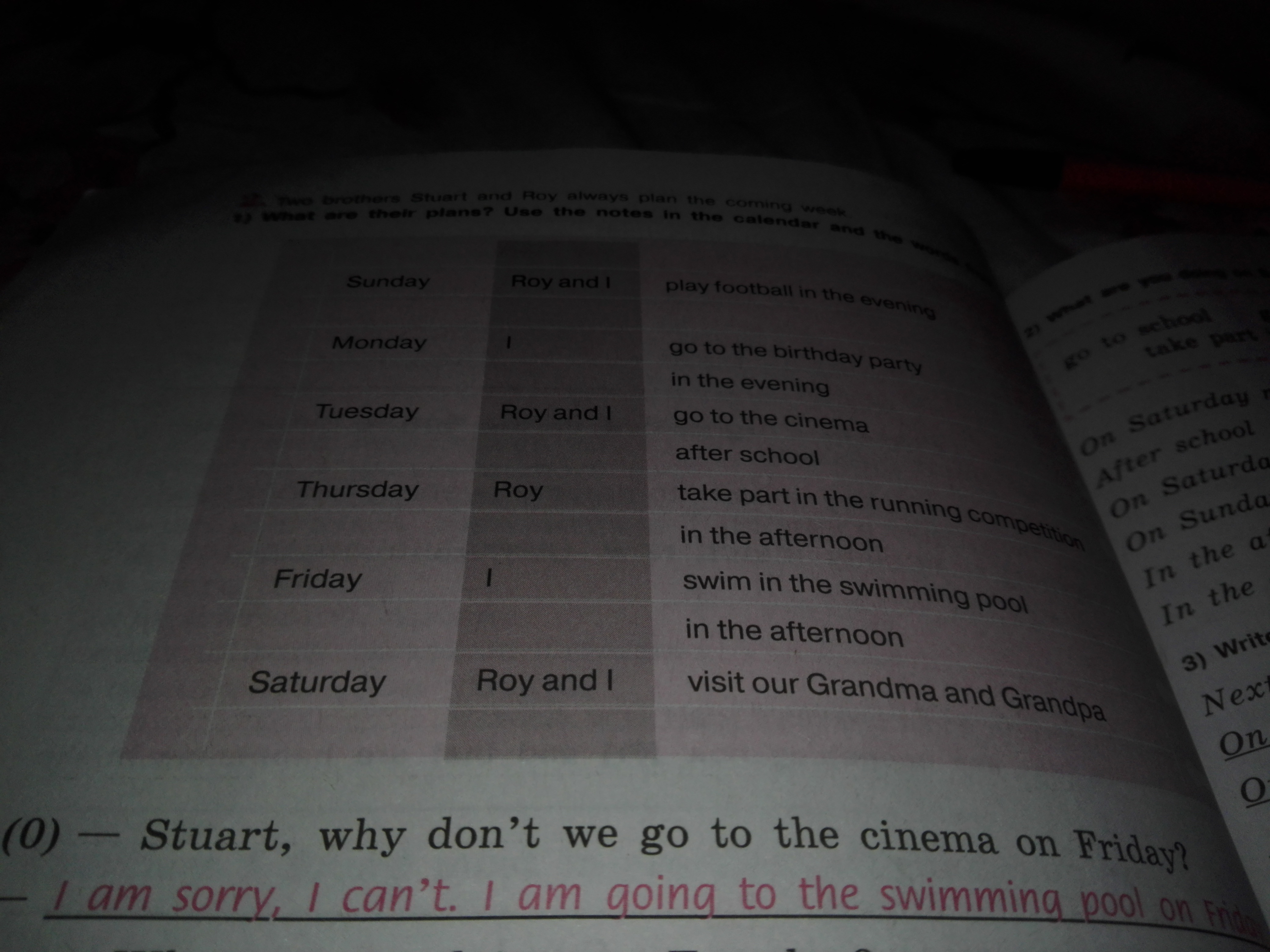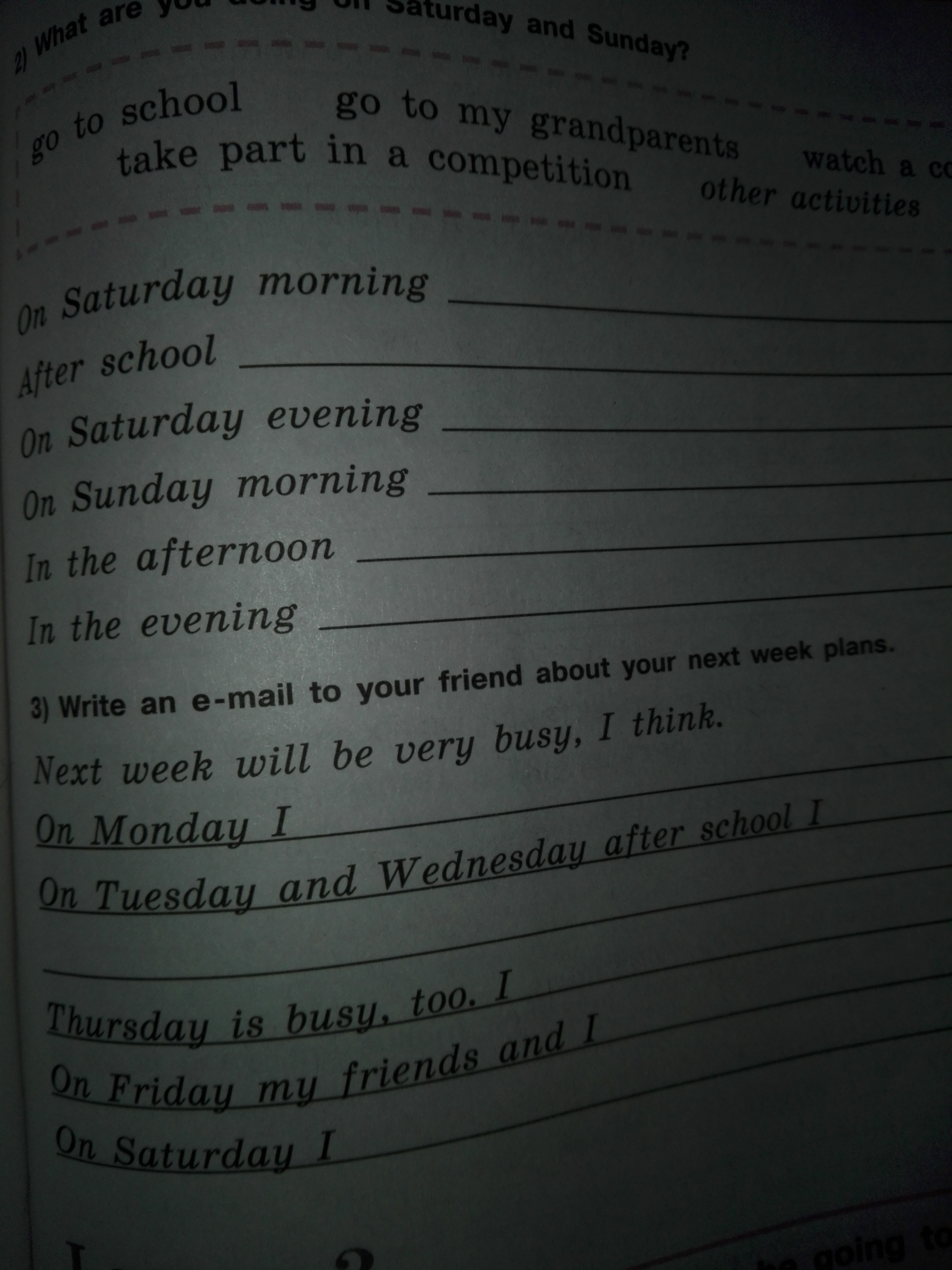 в пятницу после обеда я буду плавать в бассейне