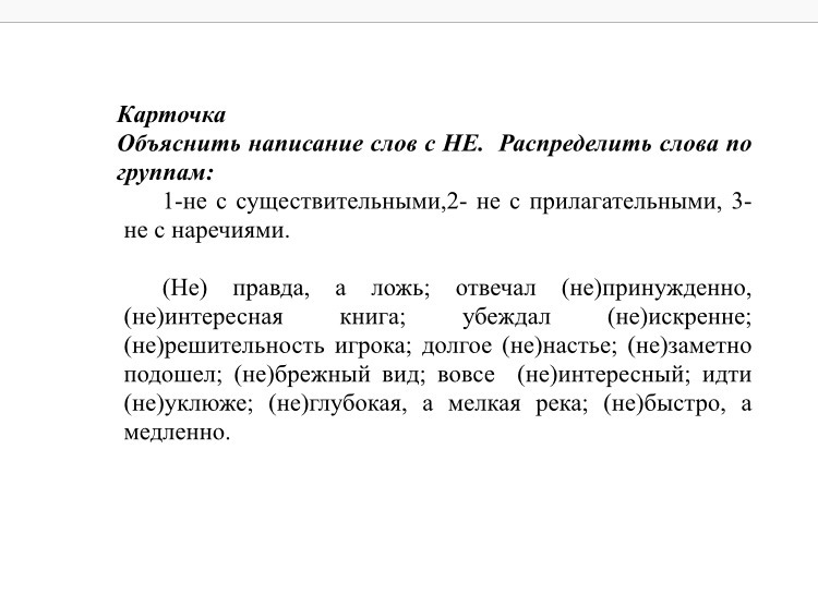 1.не правда а ложь;нерешительность игрока;долгое ненастье.2не интересная книга;небрежный вид;вовсе не интересный;не глубокая,а мелкая река.3 отвечал не принужденно;убеждал не искренне;незаметно подошёл;идти неуклюже;не быстро,а медленно.
