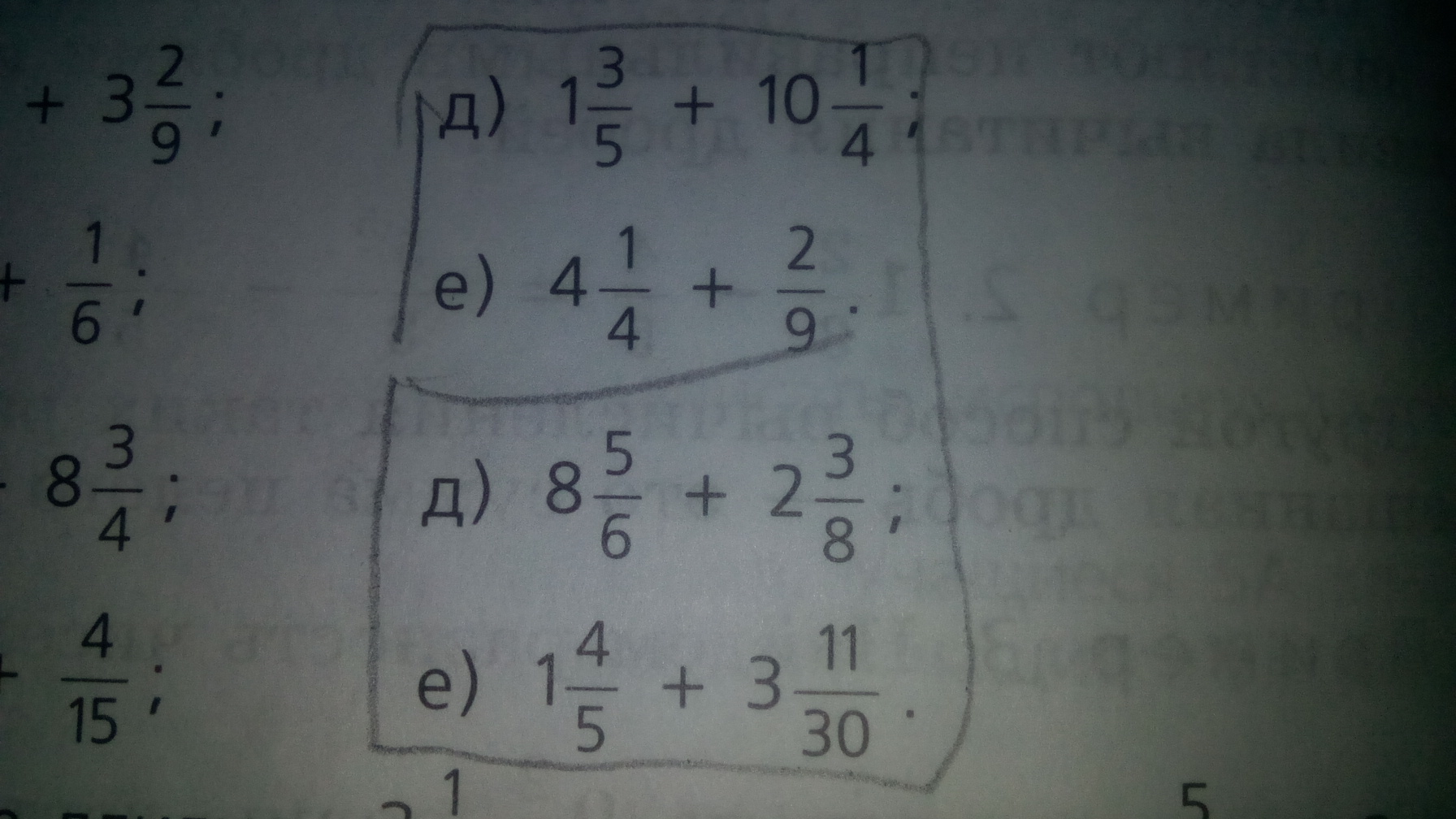 д) 85+414=3220+20520=23720=11 1720