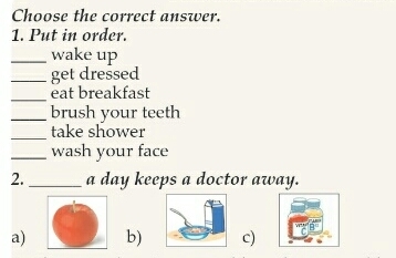 В первом там нужно в правильном порядке расставить. Типо ты встаешь, потом моешься и тд.