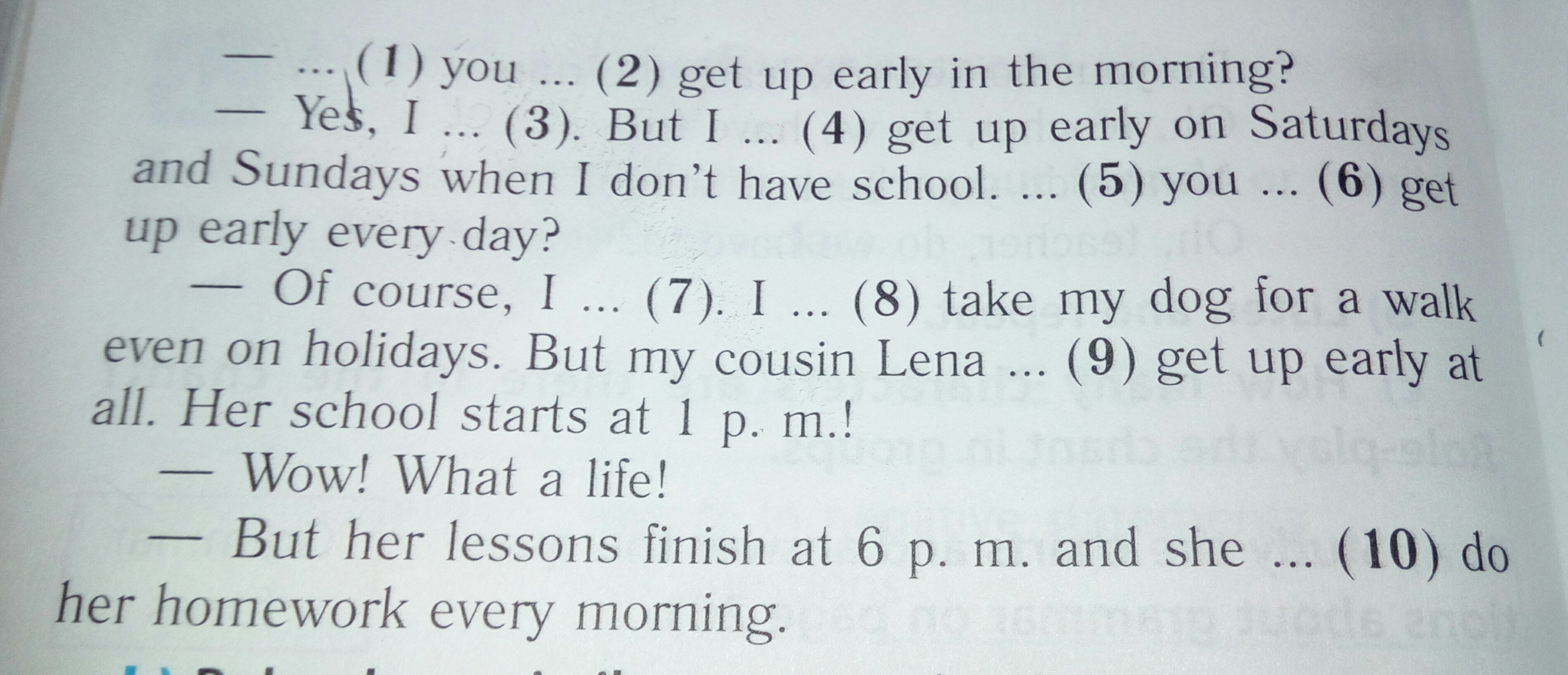 Помогите надо вставить do( 4 раза), has to, have to ( 3 раза), don't have to, doesn't have to.