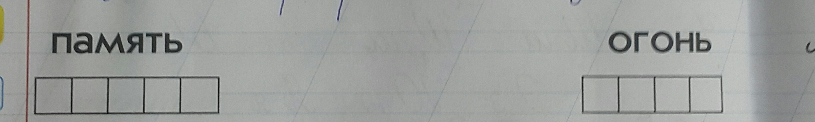 Огонь: гласные две о; согласные-г,н; зелёным-ь