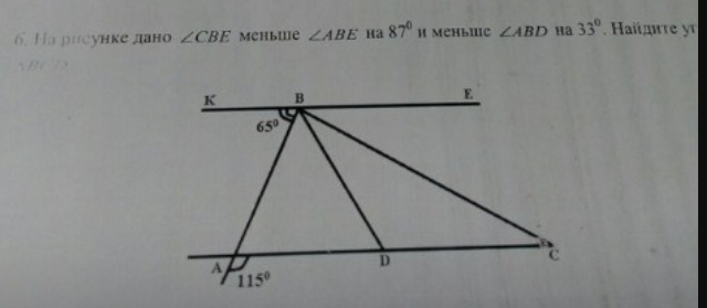 ∠СВЕ=∠АВЕ-87 (по условию), ∠СВЕ=115-87=28°