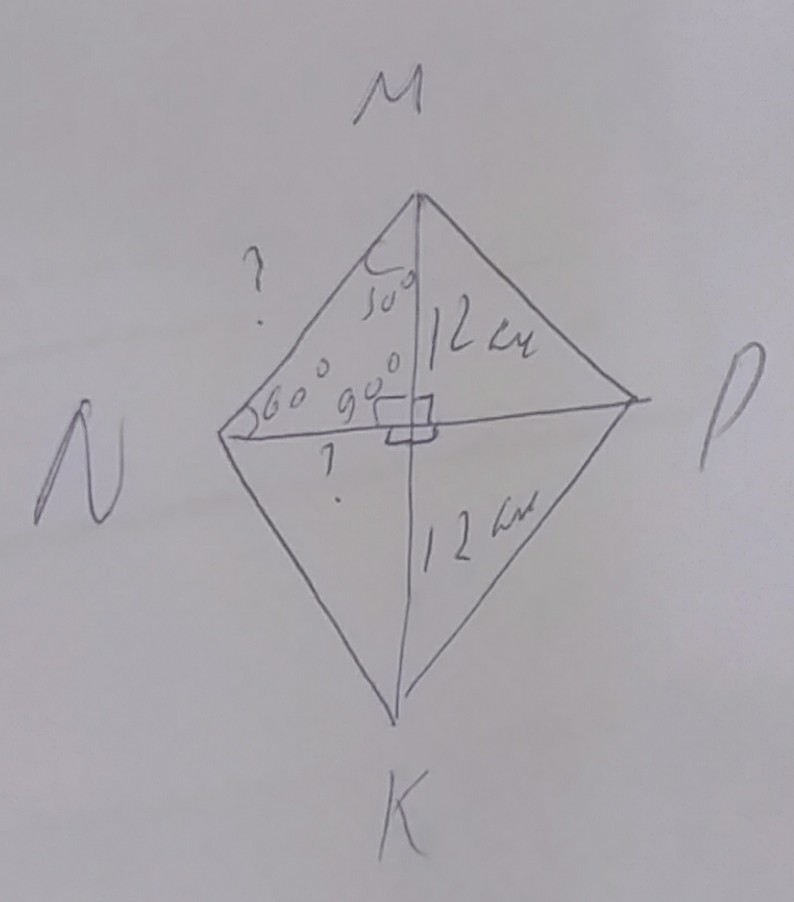 В ромбе MNKP диагональ MK = 24 см. Найдите сторону ромба, если угол MNK равен 120°