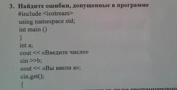 Первая скобка должна быть такой «{«, вторая такой «}». После «Введите число» пропущено «;».