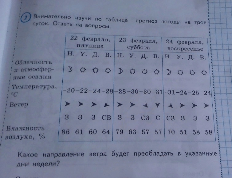Внимательно изучи по таблице прогноз погоды на трое суток.Ответь на вопросы.