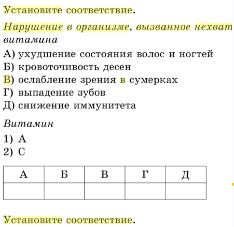 А-1;Б-2;В-1;Г-2Д-1