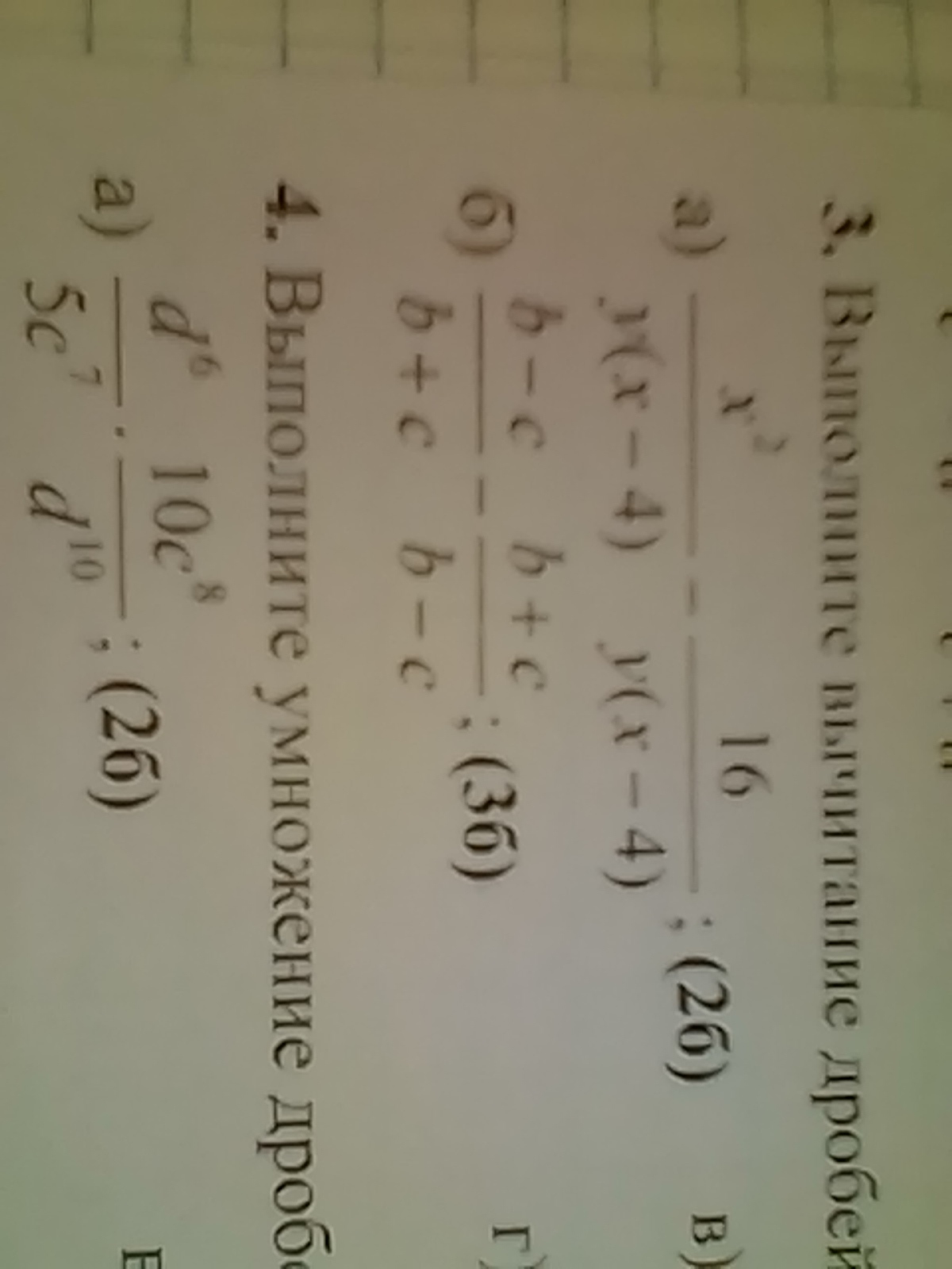 3. а) х²/у(х-4) -16/у(х-4) = х² - 16/ у(х-4)= (х + 4)/ у.