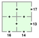 Незнайка составил четыре числовых ребуса, в которых требуется заполнить пустые клетки числами так, чтобы получились верные равенства, и предложил Знайке их решить. Знайка сразу заметил, что один из ребусов составлен неверно. Какой?