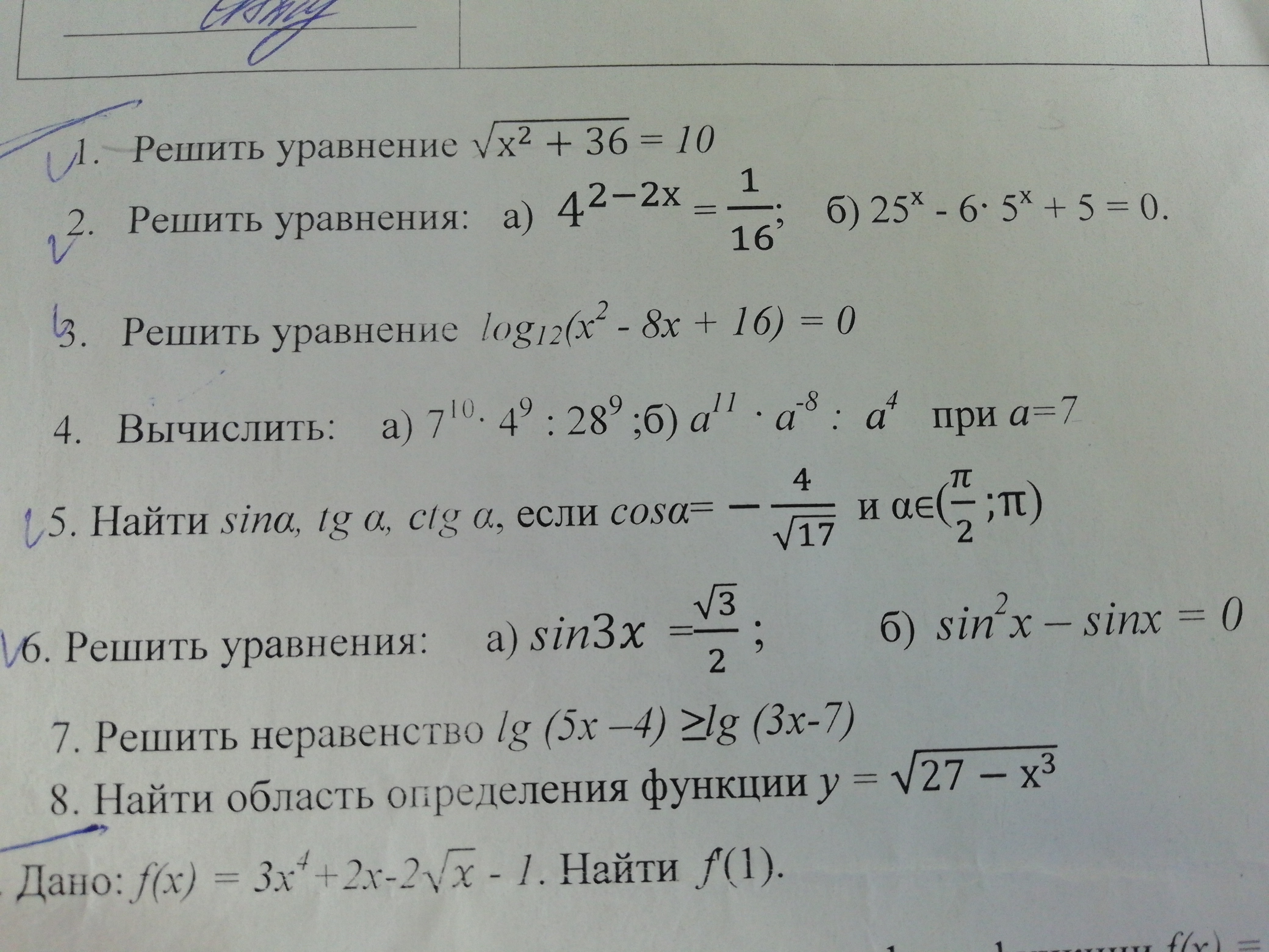 1) 5² - 8 * 5 +16 = 25 - 40 + 16 = 1 > 0