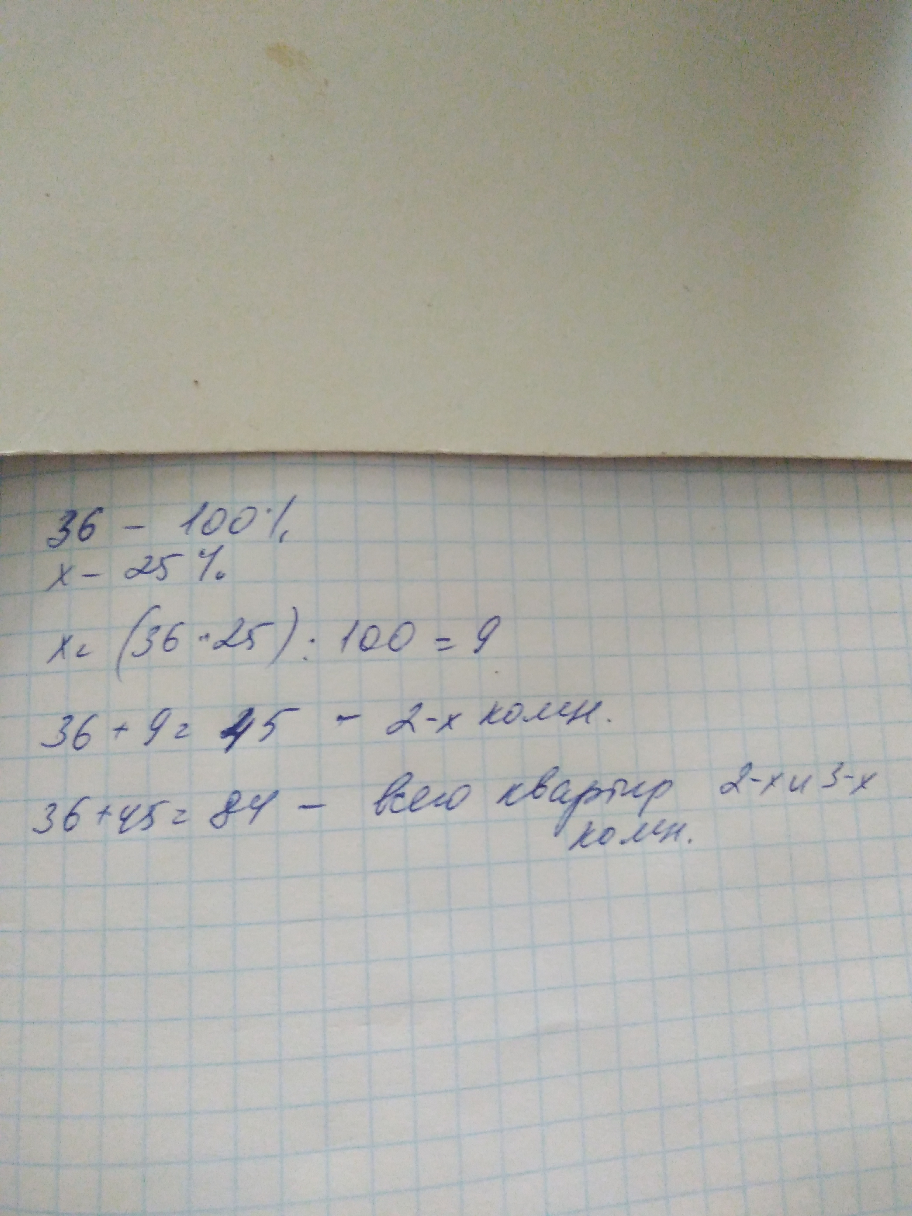 В многоквартирном доме 36 трёхкомнатных квартир, а двухкомнатных на 25% больше, чем трёхкомнатных. Сколько двух и трёхкомнатных квартир вместе в этом доме ? СРОЧНО !!!