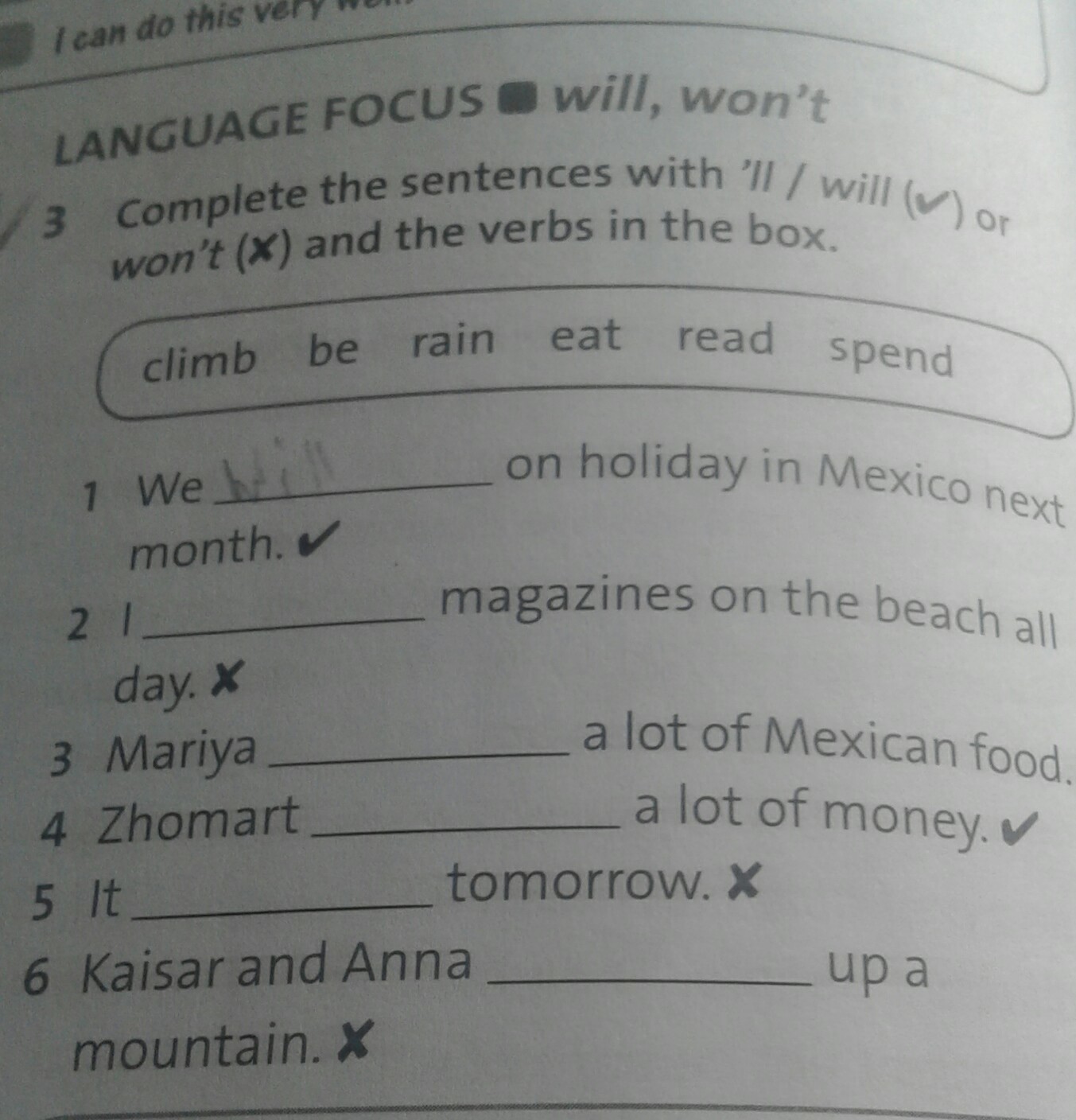 (Либо will либо won't..зависит от знака × или галочка)Eat