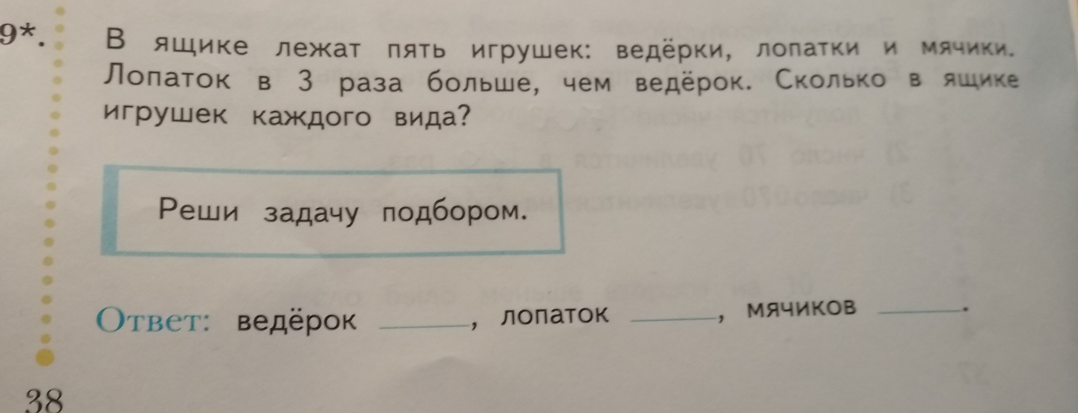 Потому что всего 5 игрушек и при другом количестве мячик в или ведёрко, тогда не получить с в 3 раза больше лопаток