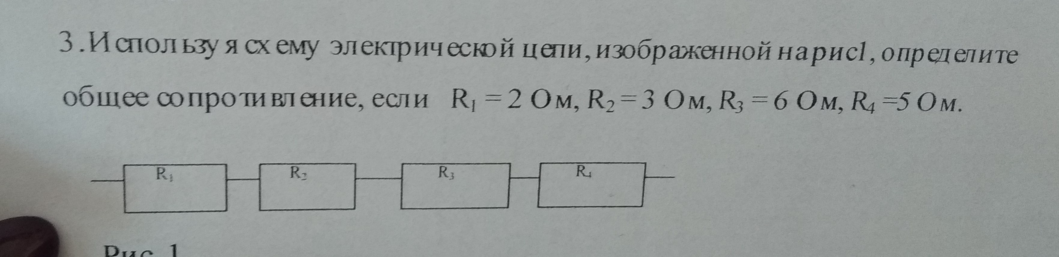 используя схему электрической цепи изображенной на рисунке 1 определите общее сопротивление,если R1 равно 2Ом