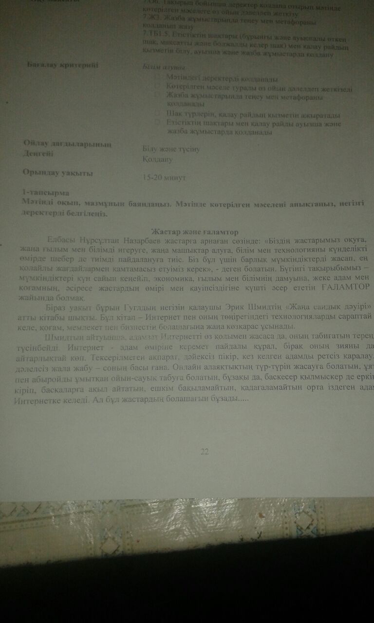 Мәтінде ғаламтордың пайдасы мен зияны тұралы жазылған.