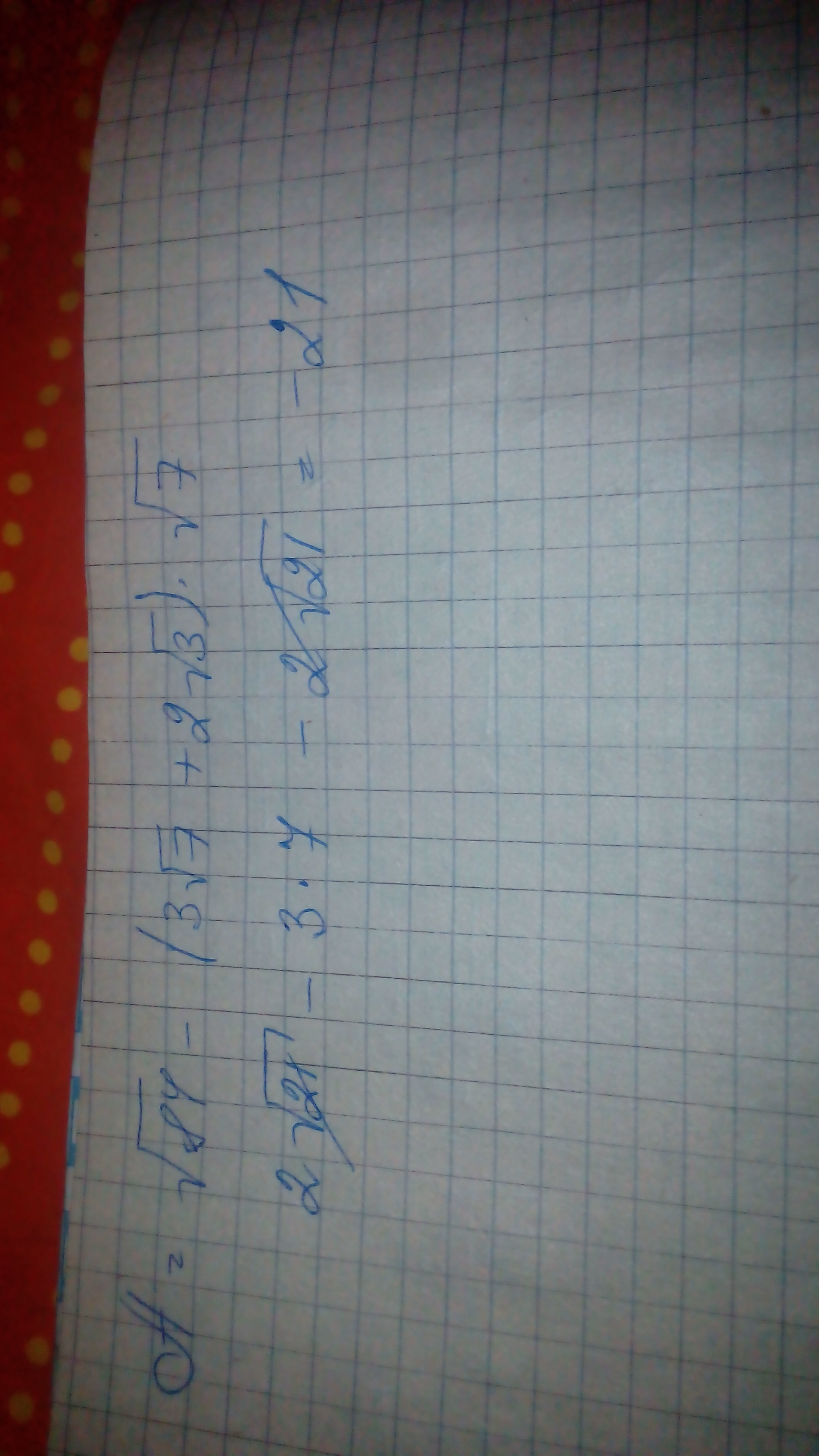 А=√84-3√49-2√21=√84-21-√4×21=√84-21-√84=-21