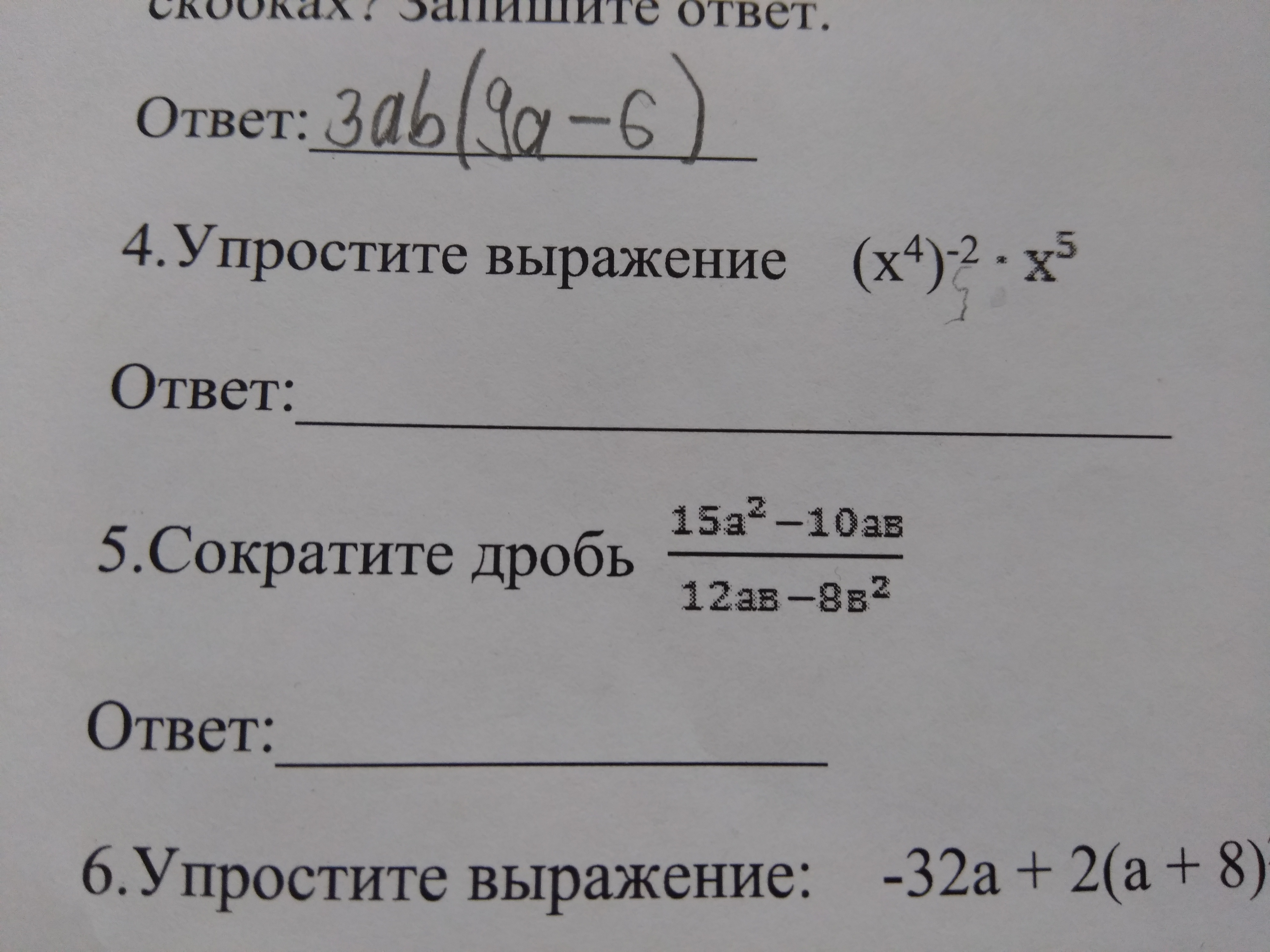 2) 5a(3a-2)/4b(3a-2) = -5a/4b