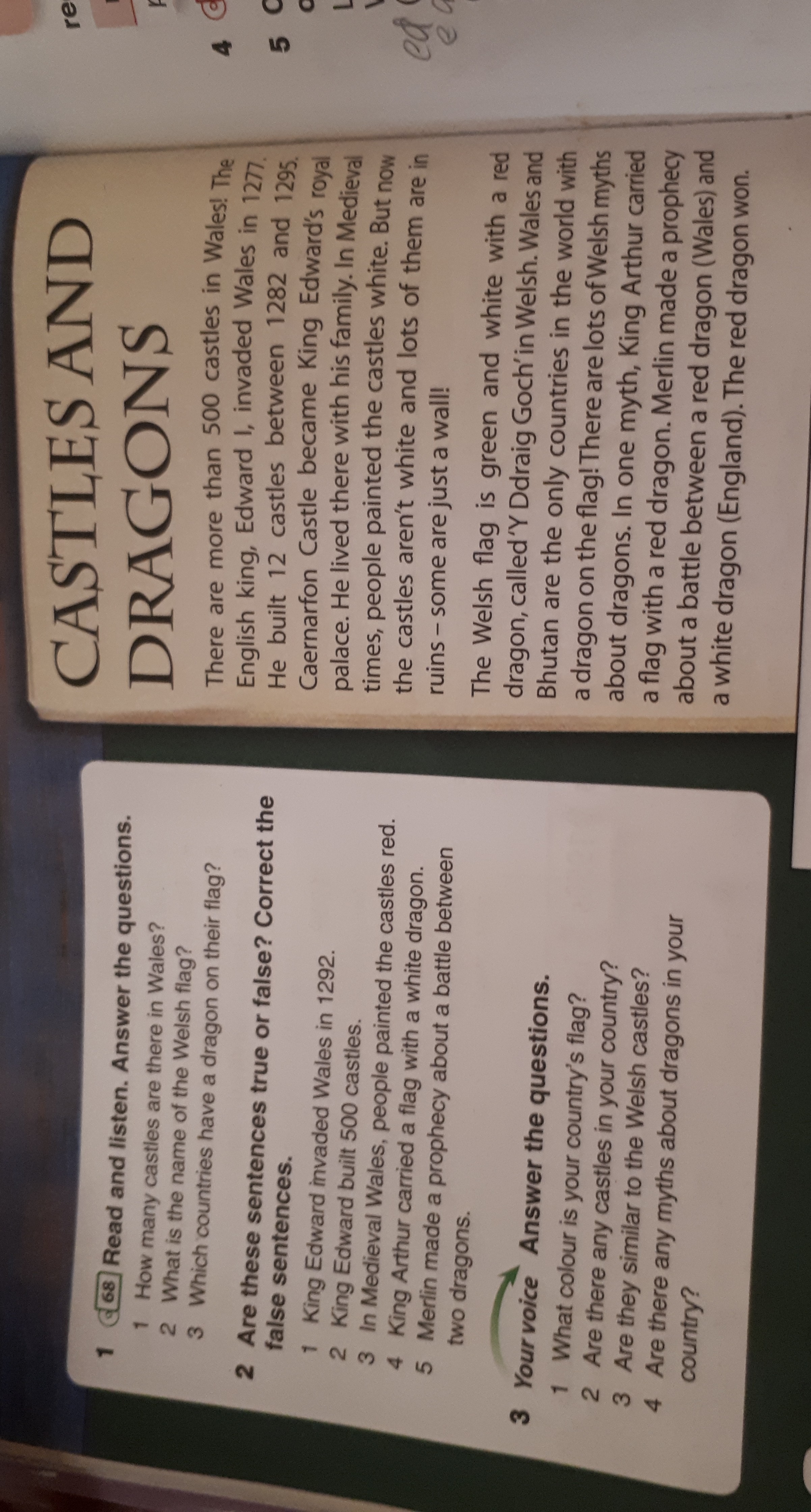 1 King Edward I invaded Wales in 1277 2 He built 12 castles 3 They were painting the castles in white 4 He was carrying a flag with the red dragon on it