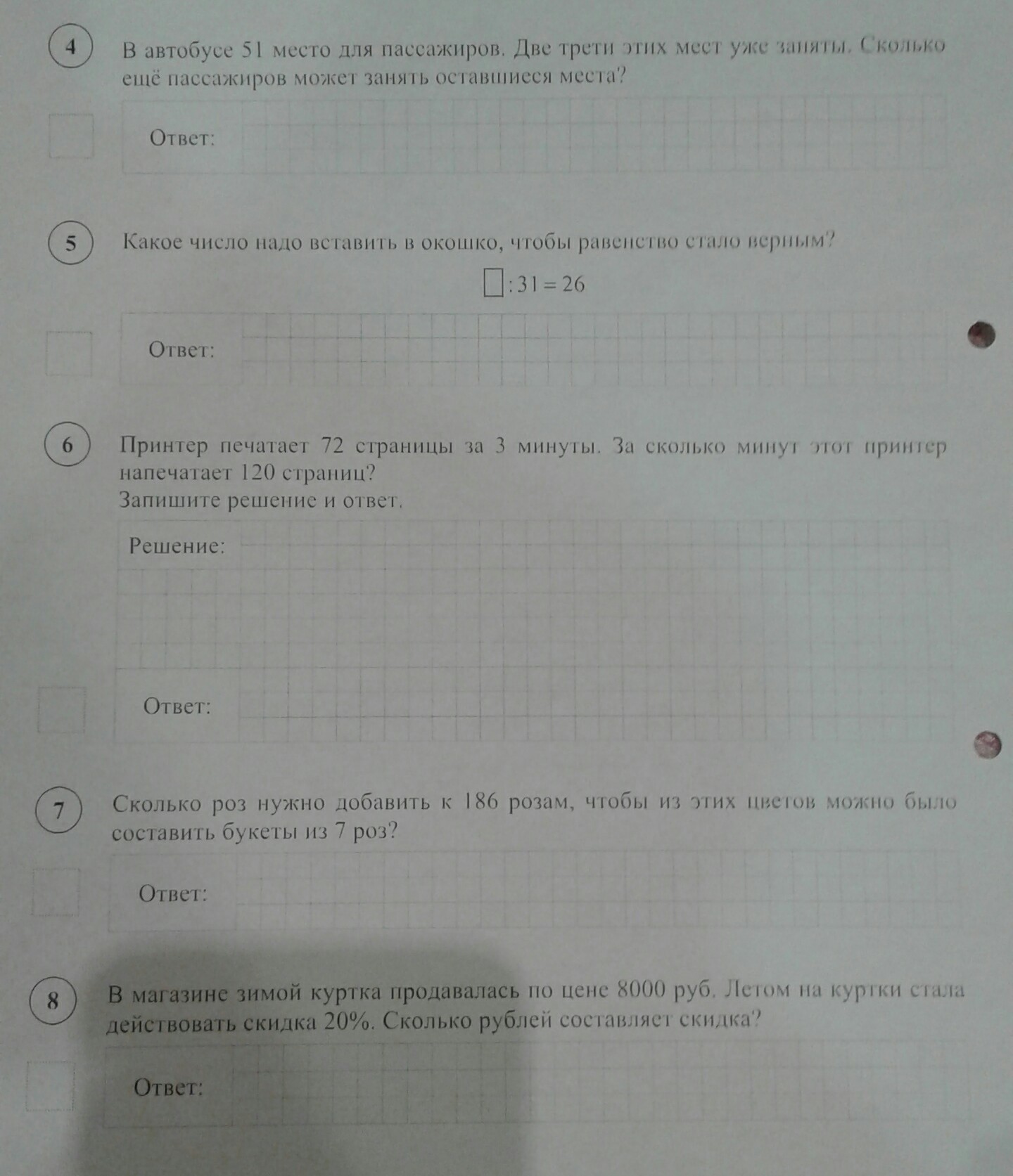 7) ответ 24 роза - так как находим ближайщее число на которое делится 7 - это число 210 ми из 210 вычитаем 186 = 24