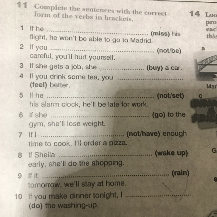 1 Misses 2 are not 3 will buy 4 will feel 5 dont set 6 goes 7 dont have 8 wakes up 9 rains 10 will do