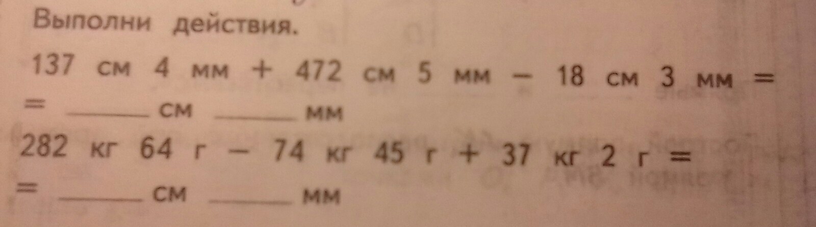 282 кг 64 г - 74 кг 45 г + 37 кг 2 г = 245 см 21 мм.