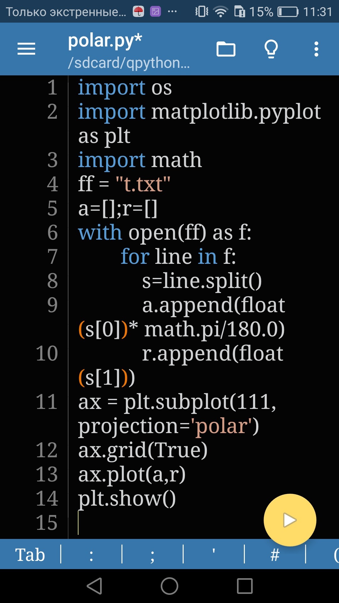 Дан текстовый файл, содержащий пары вещественных чисел, разделённых пробелом (по одной паре на строку). Написать программу, строящую график в полярных координатах на основе файла. Первое число - угловая координата, второе - радиальная. Программа должна позволять пользователю указать открываемый файл.