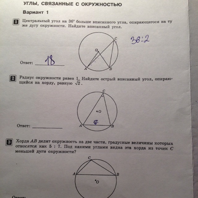 Центральный угол на 36 градусов больше вписанного угла,опирающегося на ту же дугу окружности.Найдите вписанный угол