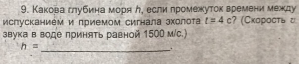 если сигнал испускают, а потом принимают и это знаимет 4 с,то половина времени - это время до глубины, а другая возвращение,