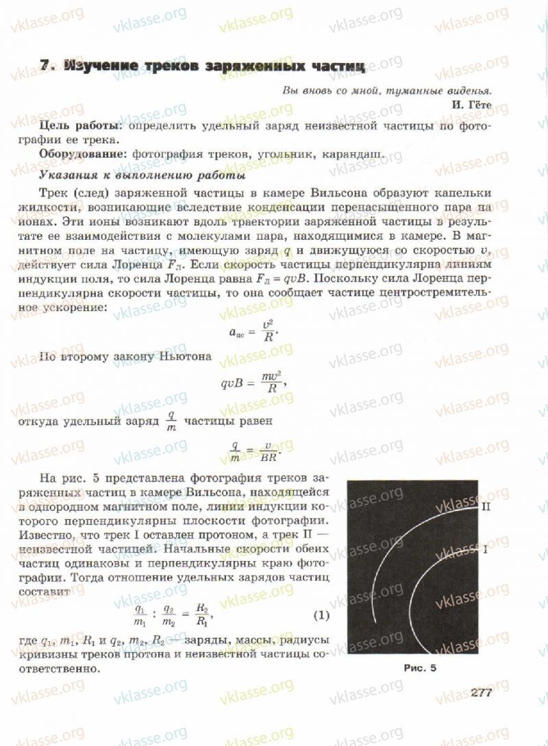 Цель работы:Определить удельный заряд неизвестной частицы по фотографии ее трека.Оборудование:Карандаш, фотография треков, угольник.