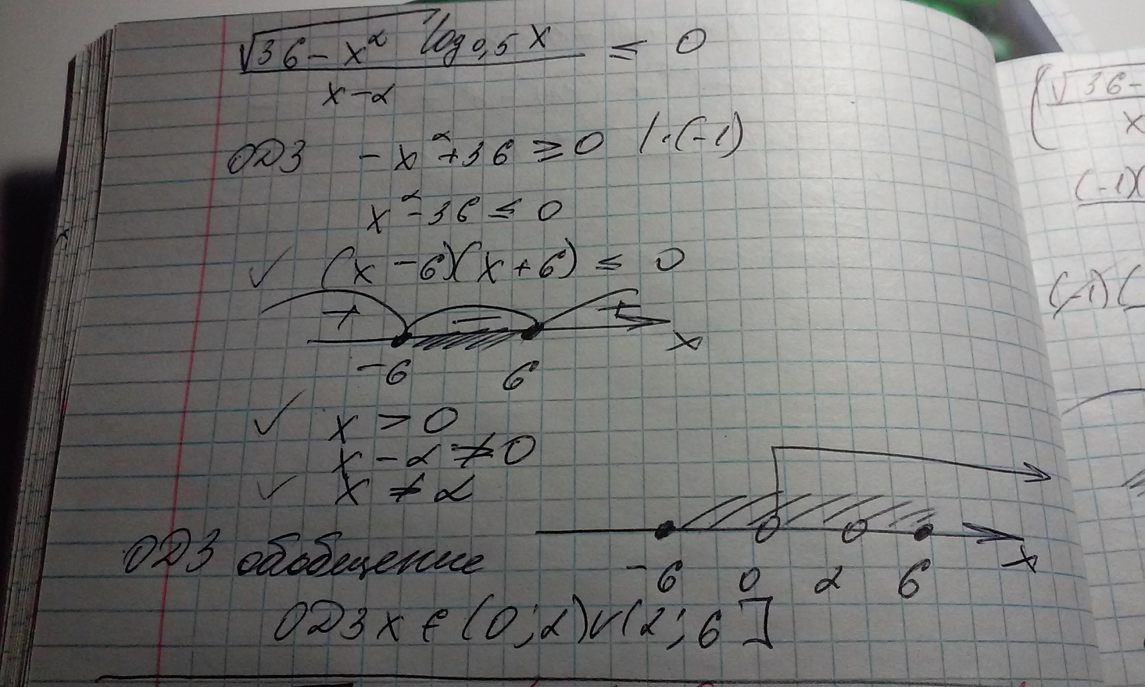 36-x^2>=0, log0.5(x)>0, x>0 x-2<0,