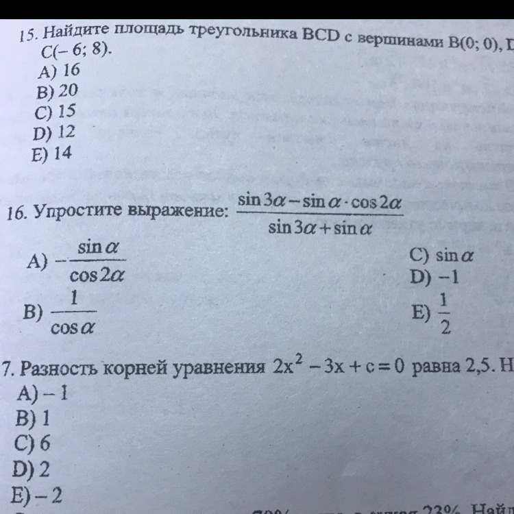 16. (Sin3a-sina*cos2x)/(sin3a+sina)