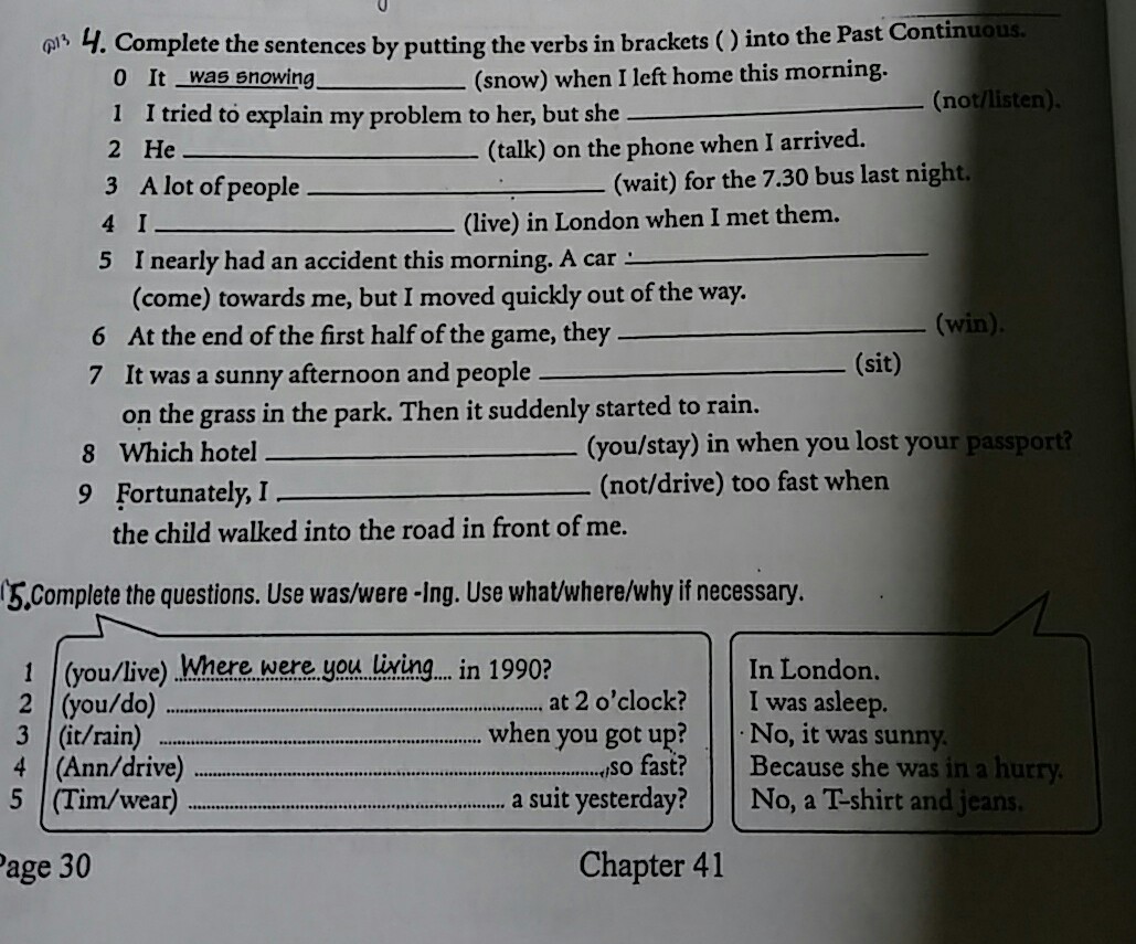 3. Was it raining, when you got up?No, it wasn't raining, it was sunny.
