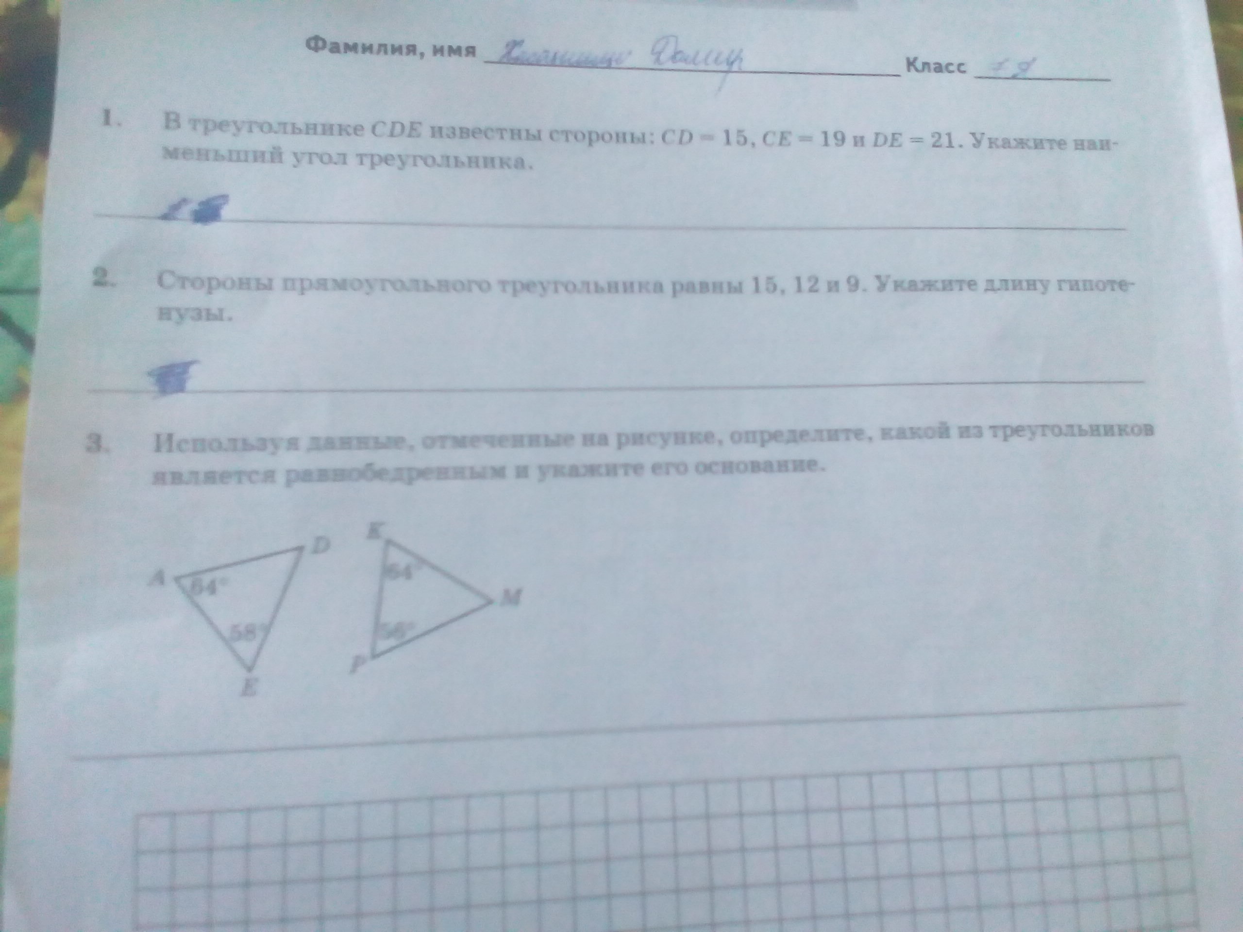 3.180-64-58=58° значит 1й треугольник равнобедренный ( т.к. <Е=<D)