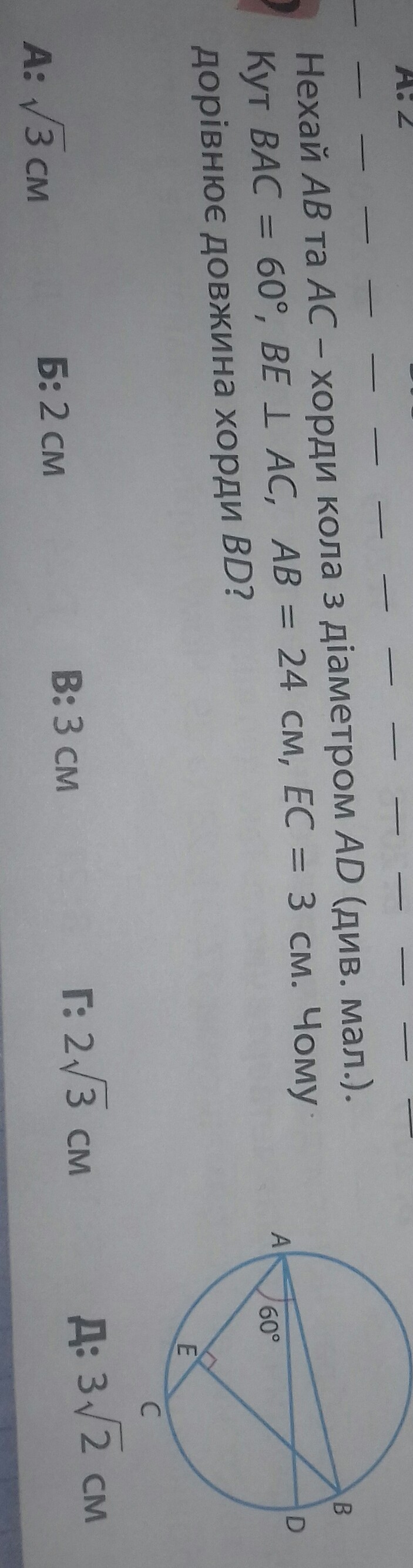 По формуле для хорды ВС=2R*sin 60° находим диаметр круга: