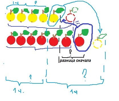 1 + 1 = 2 (ябл.) ---- настолько увеличится разница, если первый отдаст одно яблоко отдаст 1 яблоко