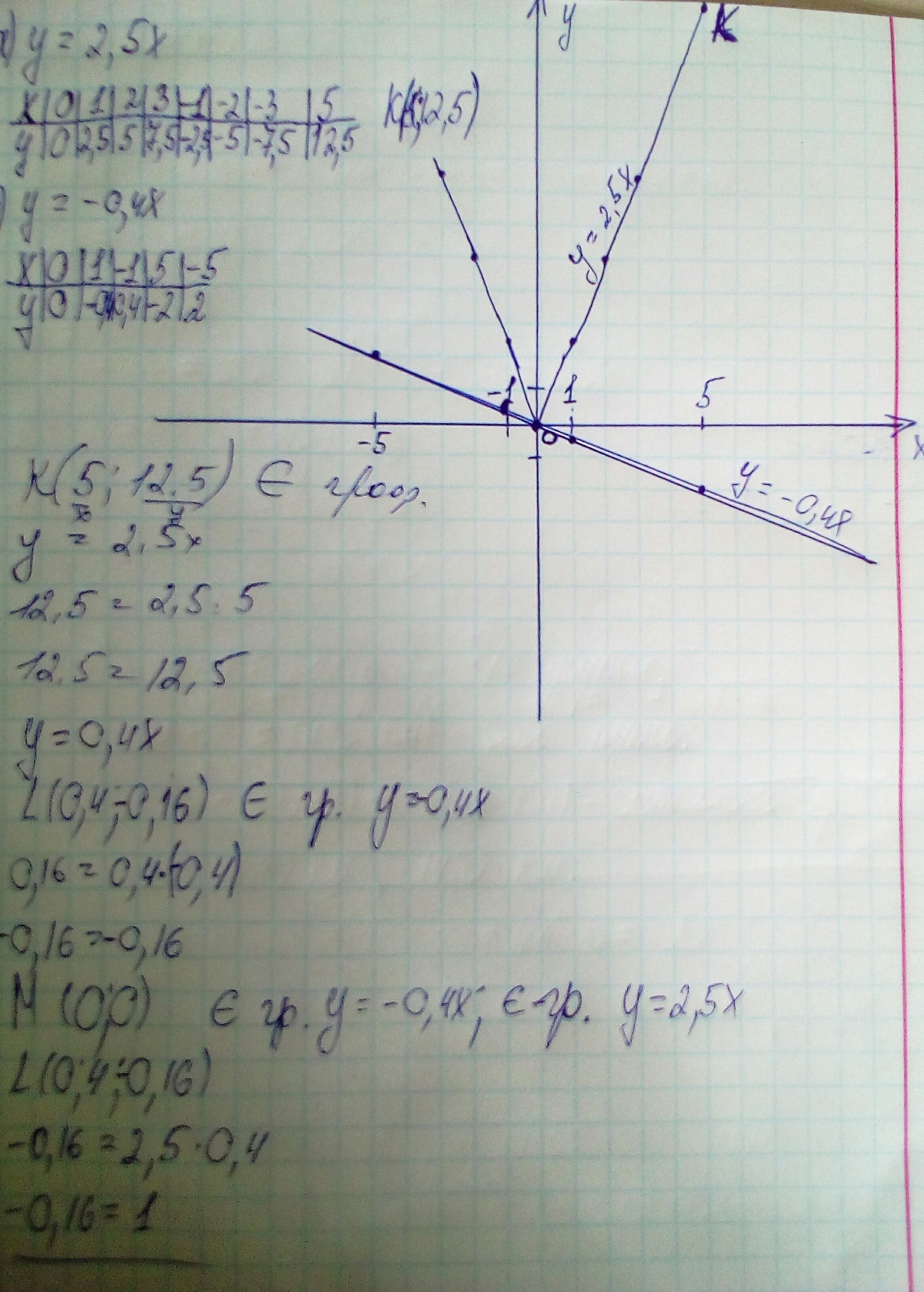 Какие из точек K(5; 12,5), L(0,4;-0,16), M (0;0) принадлежат графику функции: