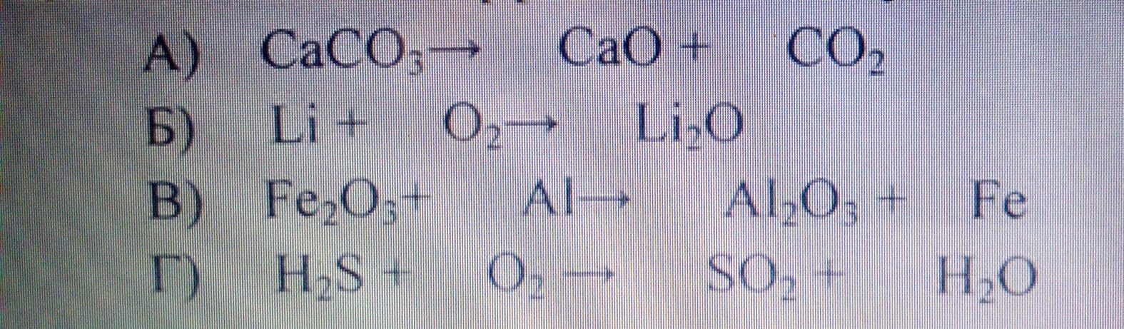 Расставьте коэффиценты в следующих химических реакциях: