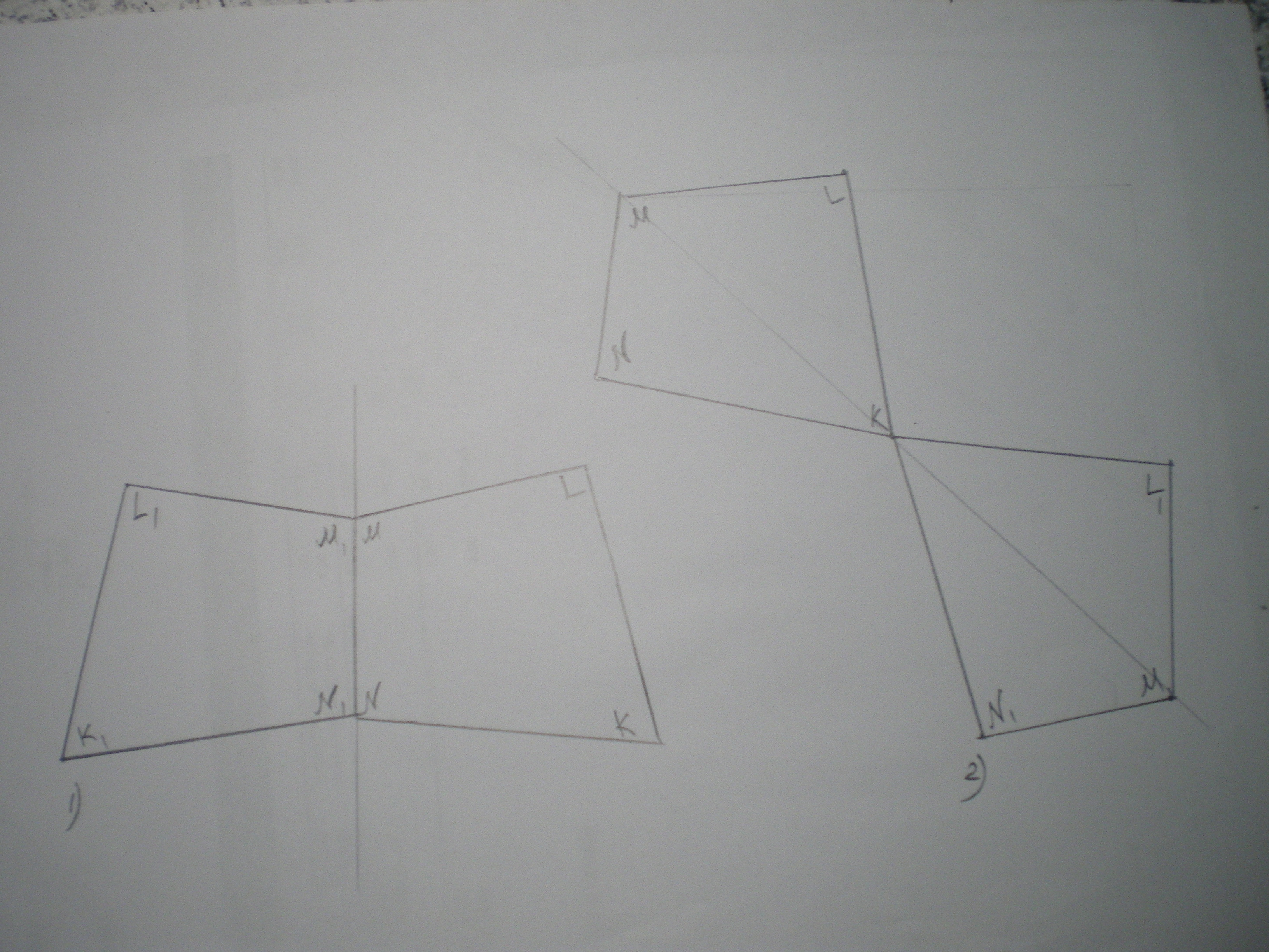 Срочно!!! Начертите четырехугольник MNKL Постройте фигуру симметричную ему относительно: а) стороны MN б) вершины К