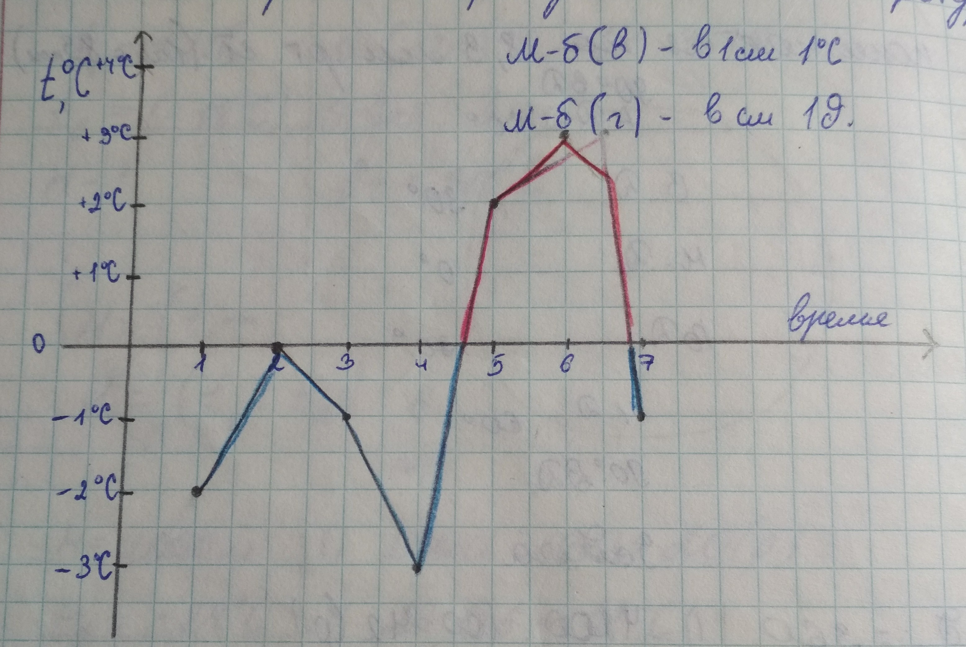 Вы не уточнили город. На фото пример графика хода температур(Вам нужно оси Х(там где написано Время,написать,что это дни(так же,если Вы не вели записи температур, посмотрите их в интернете и заполните график))