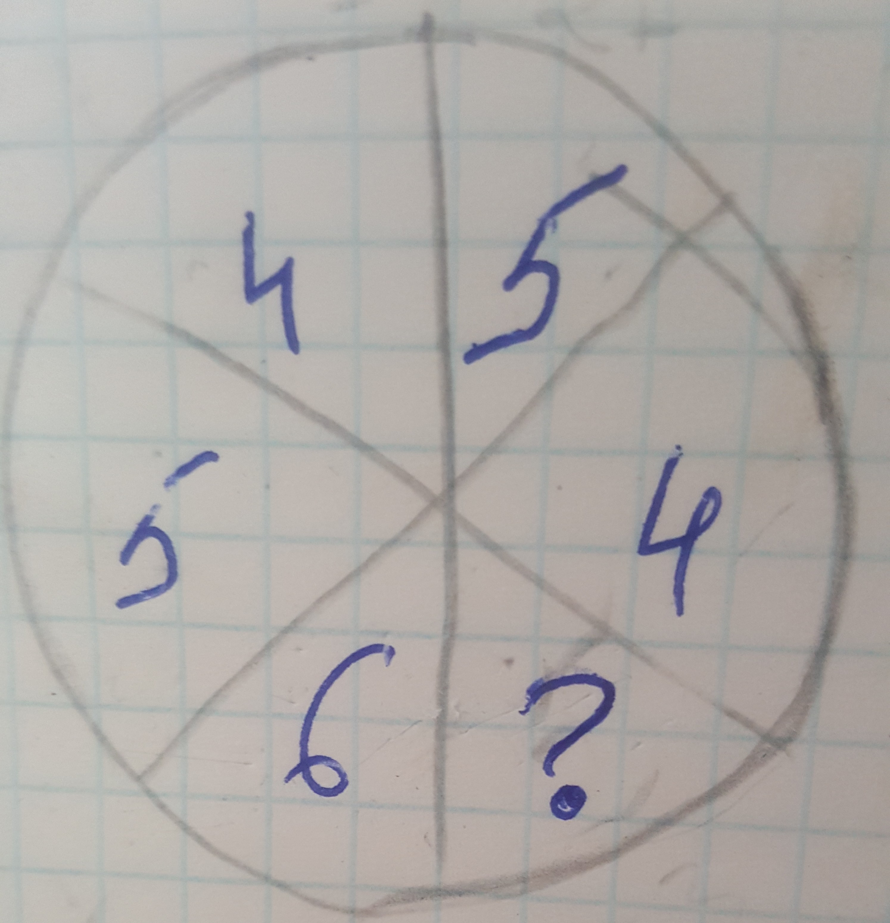 5. Вот у 4 с обеих сторон числа больше не на 1. У Второй четверки тогда тоже будут числа больше нее на 1. и 6 будут числа меньше нее на 1. Я так думаю.