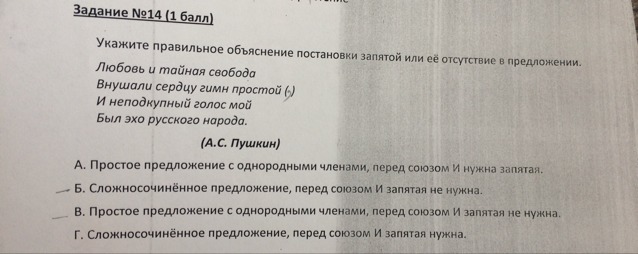 там вариант Г) потому что это сложное предложение. И когда сложное надо поставить(,,,)