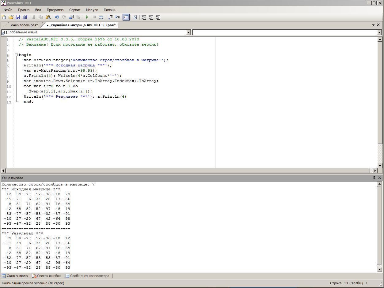 var n:=ReadInteger('Количество строк/столбцов в матрице:');
