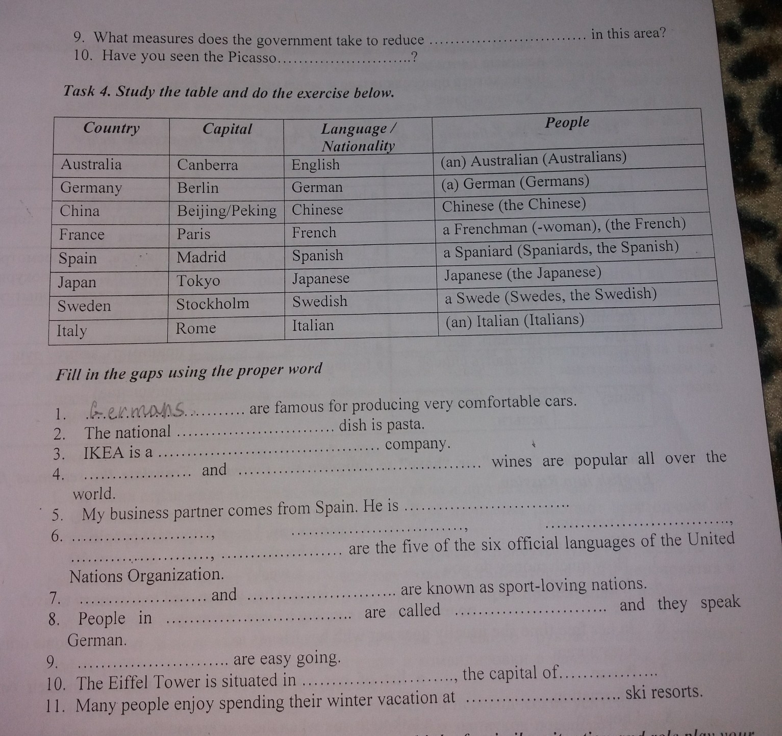 помогите!! срочно!!! нужно из таблице взять слова в нужной форме и поставить в 11 предложений.